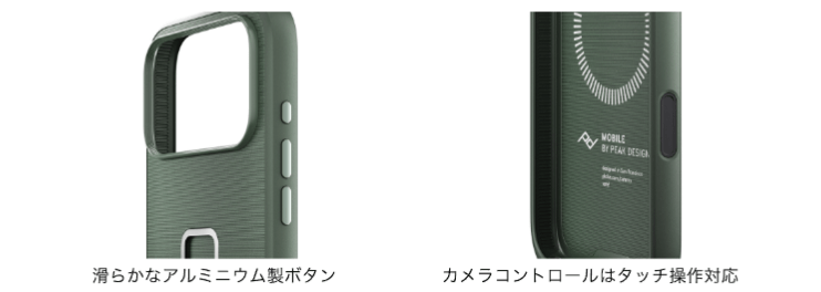 iPhone17シリーズ、iPhone Air用ケースは、側面のスクリーン越しにカメラコントロールにもアクセスでき、ケースを装着したままでタッチ操作が可能です。